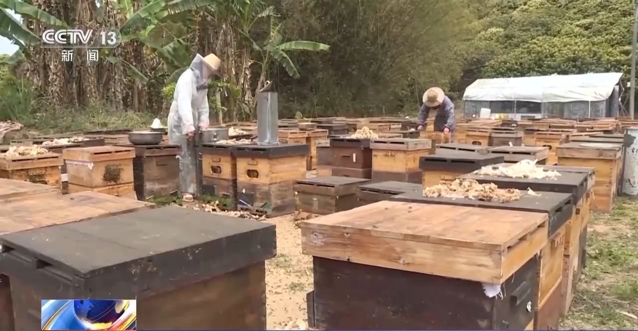 在廣西北流市,近40萬畝荔枝花陸續盛開,吸引了不少周邊省份的蜂農前來,蜜蜂在採蜜的同時還能幫助荔枝花授粉,助力荔枝豐收。