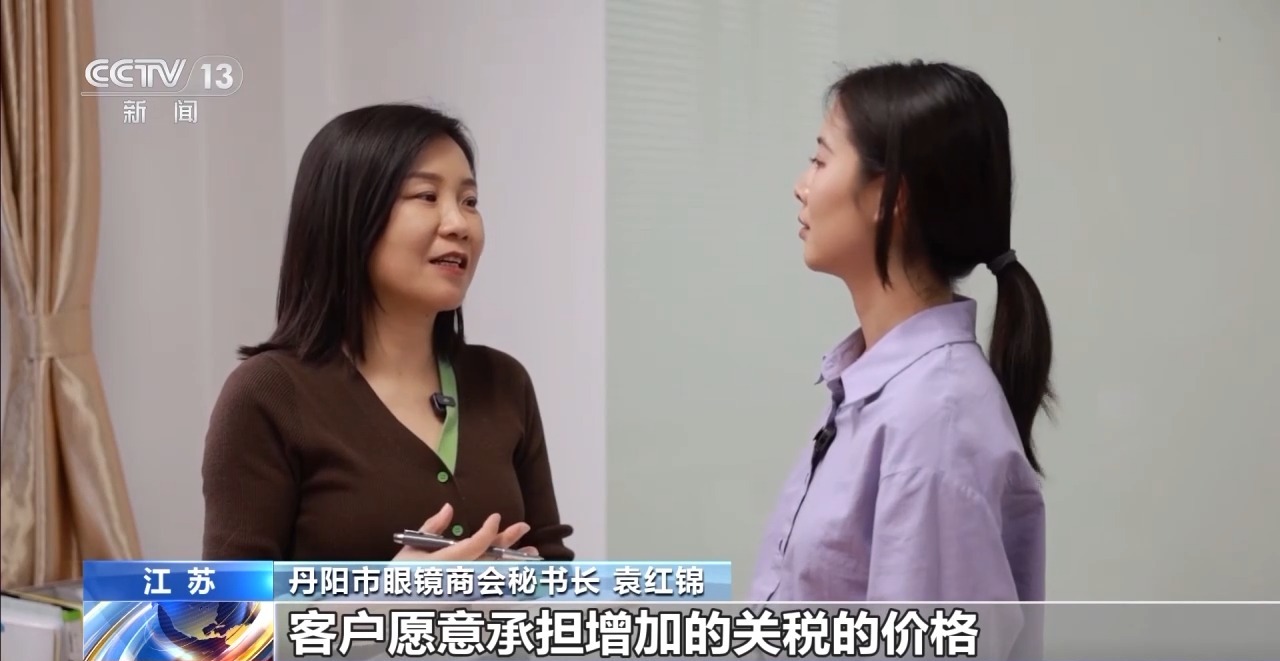 *丹陽市眼鏡商會秘書長 袁紅錦:*以外貿出口為主的這家企業已經跟他的客户談好了,客户願意承擔增加的關税的價格。有的企業要開拓其他區域的客户,或者説部分要轉到內銷市場。