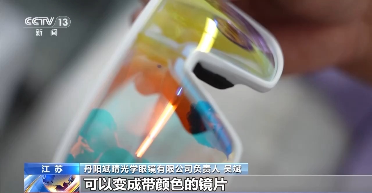 *丹陽斌晴光學眼鏡有限公司負責人 吳斌:*這是一款能夠在室外紫外線下可以變成帶顏色的鏡片,到了晚上騎行運動的時候它是透明色的。
