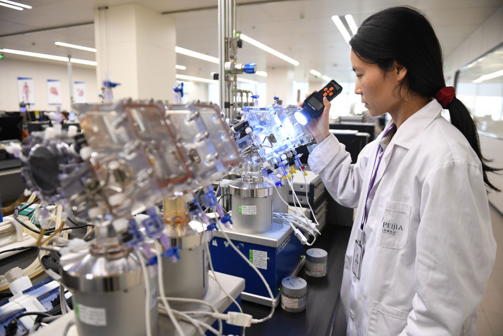 2025年3月21日,在位於蘇州工業園區的沛嘉醫療科技(蘇州)有限公司測試實驗室裏,檢測人員使用頻閃儀檢查正在疲勞測試中的人工心臟瓣膜開閉合形態。新華社發(陳雨禾 攝)