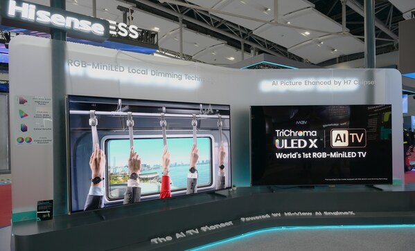 海信此次展出的116UX電視系列搭載TriChroma MiniLED X背光技術,峯值亮度高達10,000尼特,覆蓋97%的BT.2020廣色域。作為全球100英寸以上電視出貨量第一的製造商,海信為116UX配備了自研的Hi-View AI Engine X圖像引擎,支持AI色彩區域調光與AI 4K圖像增強,呈現沉浸式視覺盛宴。