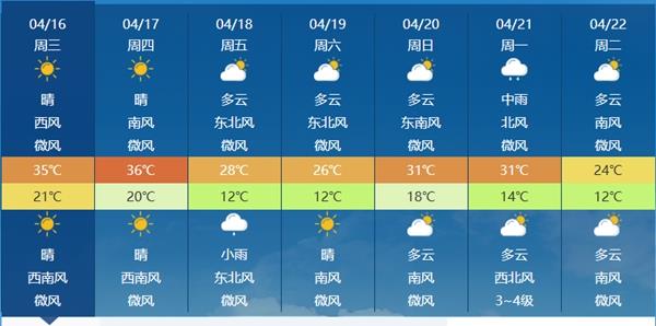 △鄭州明天最高氣温或可達36℃