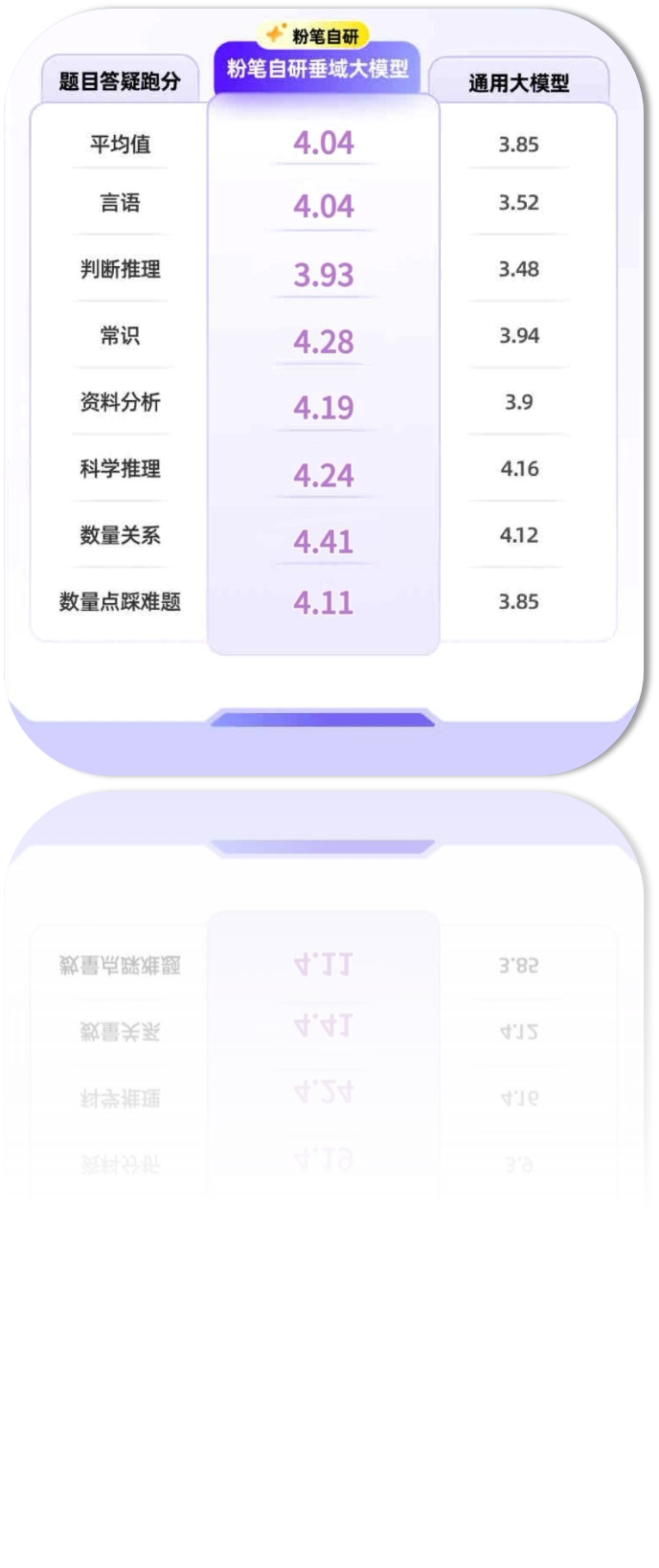 根據內部測算,粉筆垂域大模型平均評分比通用模型高出約0.2分,尤其在言語、判斷推理和常識等等科目上表現更為突出。