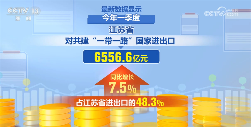 最新數據顯示,今年一季度,江蘇省對共建“一帶一路”國家進出口6556.6億元,同比增長7.5%,佔江蘇省進出口的48.3%。