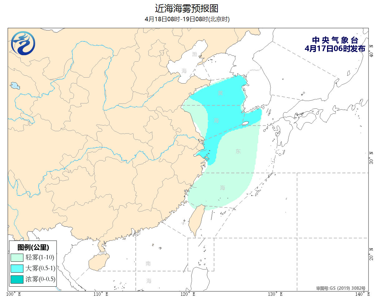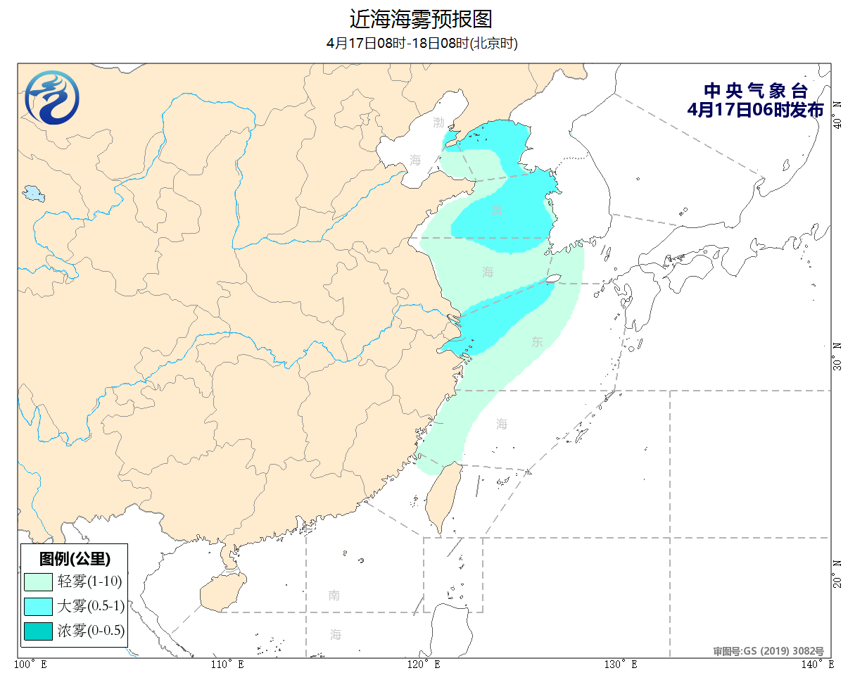 4月17日06時中央氣象台發佈《大霧黃色預警》。