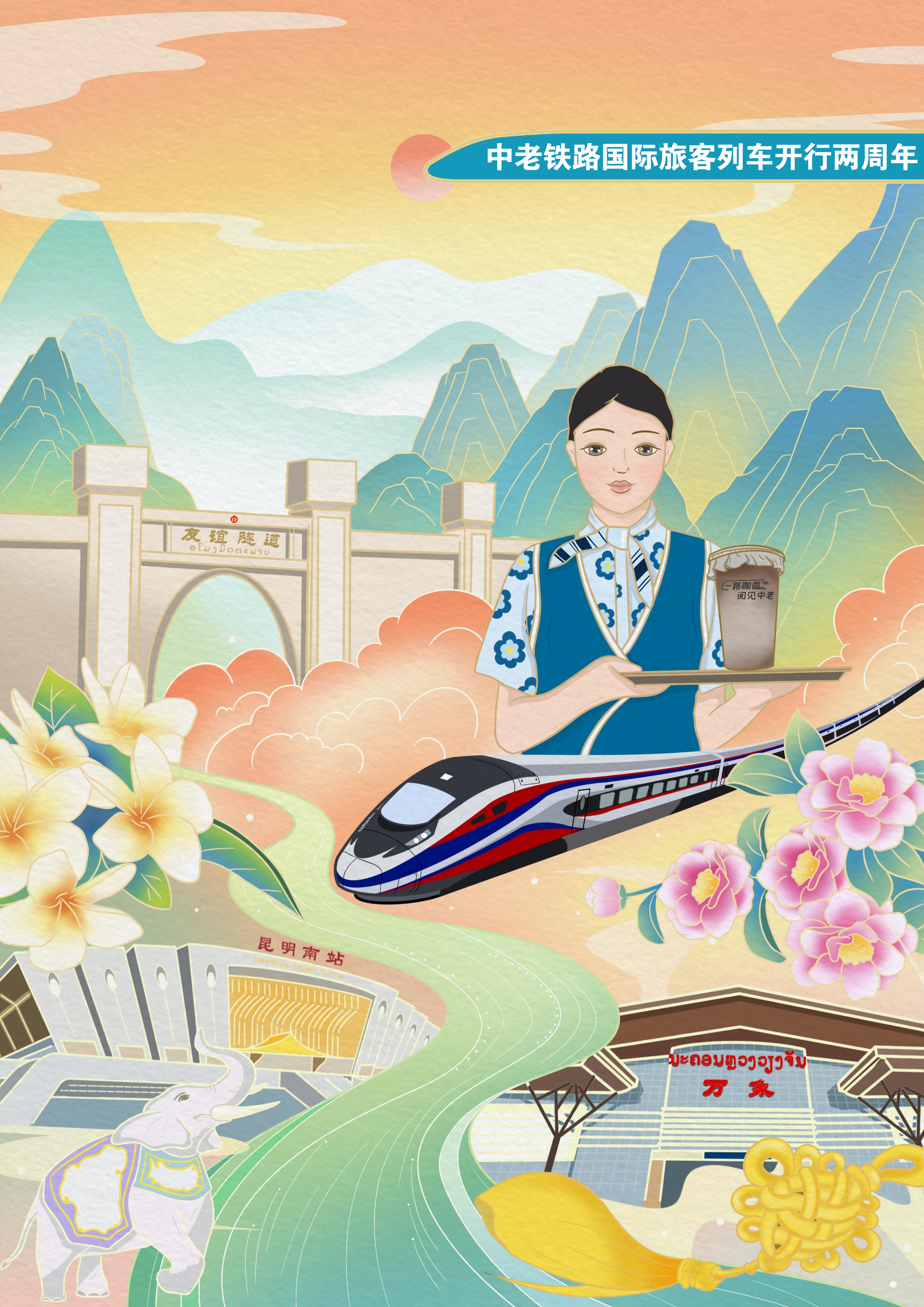 中老鐵路國際旅客列車以持續優化的硬件設施和貼心服務,讓跨境出行更加簡單、高效、舒適。昆明南至萬象運行時間從初期10小時30分壓縮至9小時30分左右,口岸通關時間由初期的90分鐘壓縮至最短50分鐘,出入境人數從每天300人次增至最高1300人次。在“快”與“穩”的平衡中,鐵路部門更以用心服務温暖中外旅客:配備中老英三語播報系統,推出融合傣族風味與老撾咖啡的“舌尖上的列車美食”,在車站增設POS機、ATM機及“專門窗口”,並在列車上配備電子臂式血壓計方便旅客需要。
