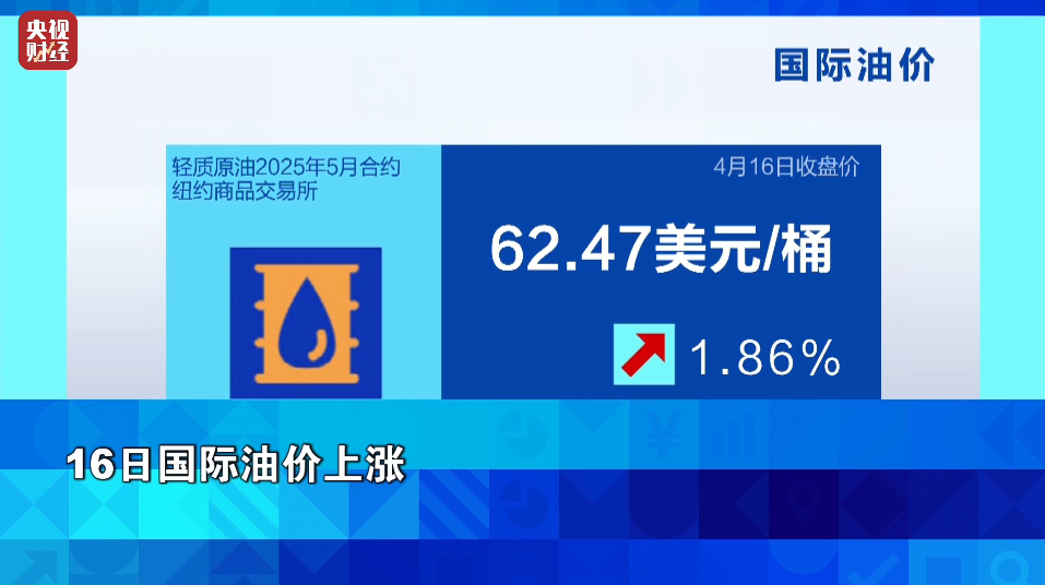 投資者預計全球原油供應短期趨緊,國際油價週三上漲。截至收盤,紐約商品交易所5月交貨的輕質原油期貨價格收於每桶62.47美元,漲幅為1.86%;6月交貨的倫敦布倫特原油期貨價格收於每桶65.85美元,漲幅為1.82%。
