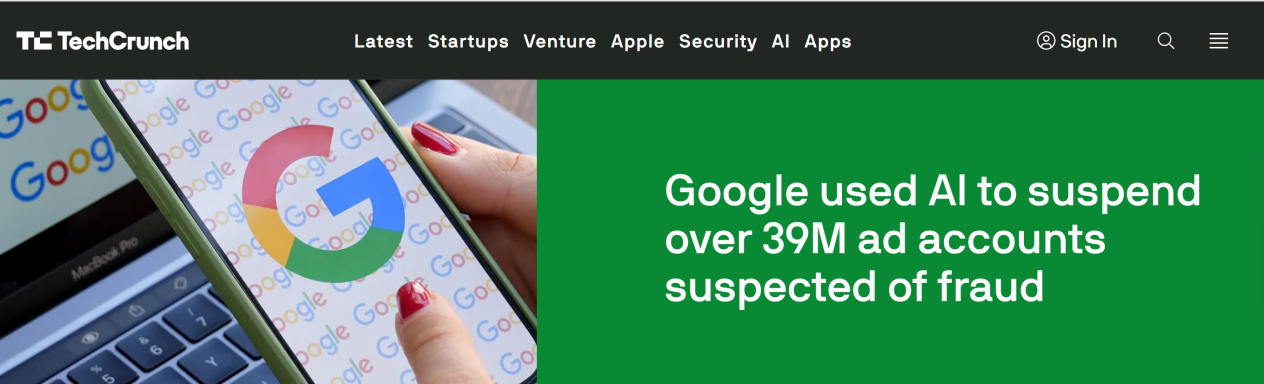 利用AI,谷歌去年封停3920萬個廣告賬號