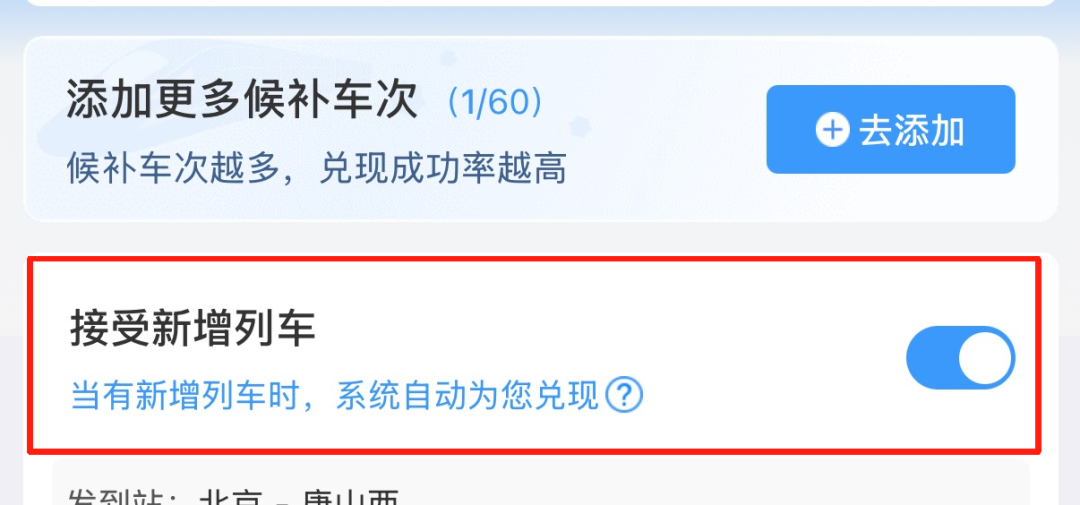 對於五一假期是否會增開車次,上述客服稱,主要看候補票的數量,如果多了會考慮增開列車,旅客可以關注餘票信息,並在候補票頁面將“接受新增列車”按鈕打開, 可以提升購票成功率。