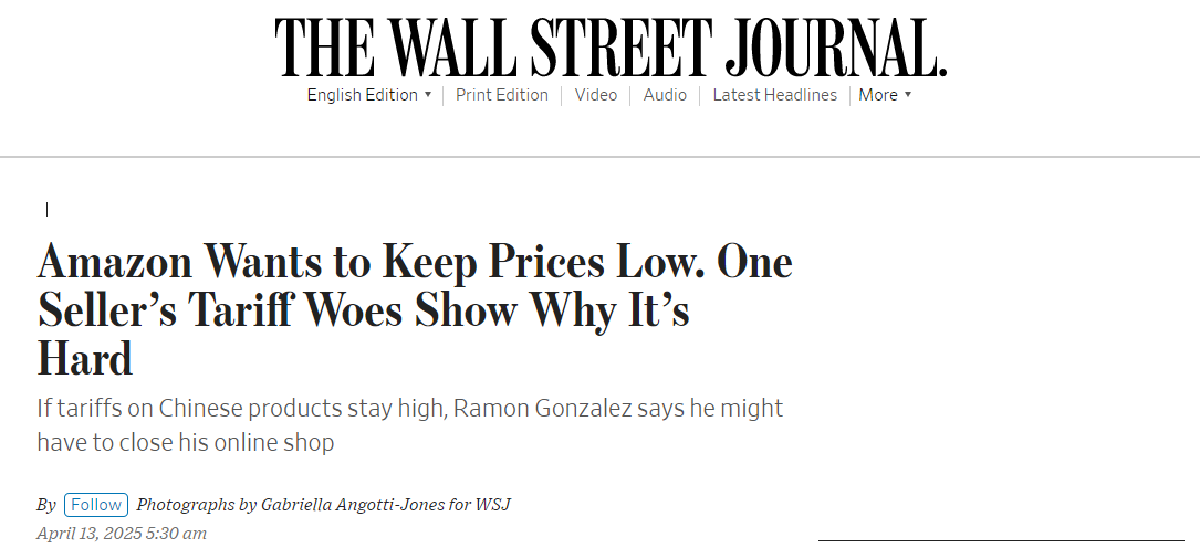 美國關税的衝擊從大企業已經蔓延至小商家,亞馬遜賣家同樣深陷困境。