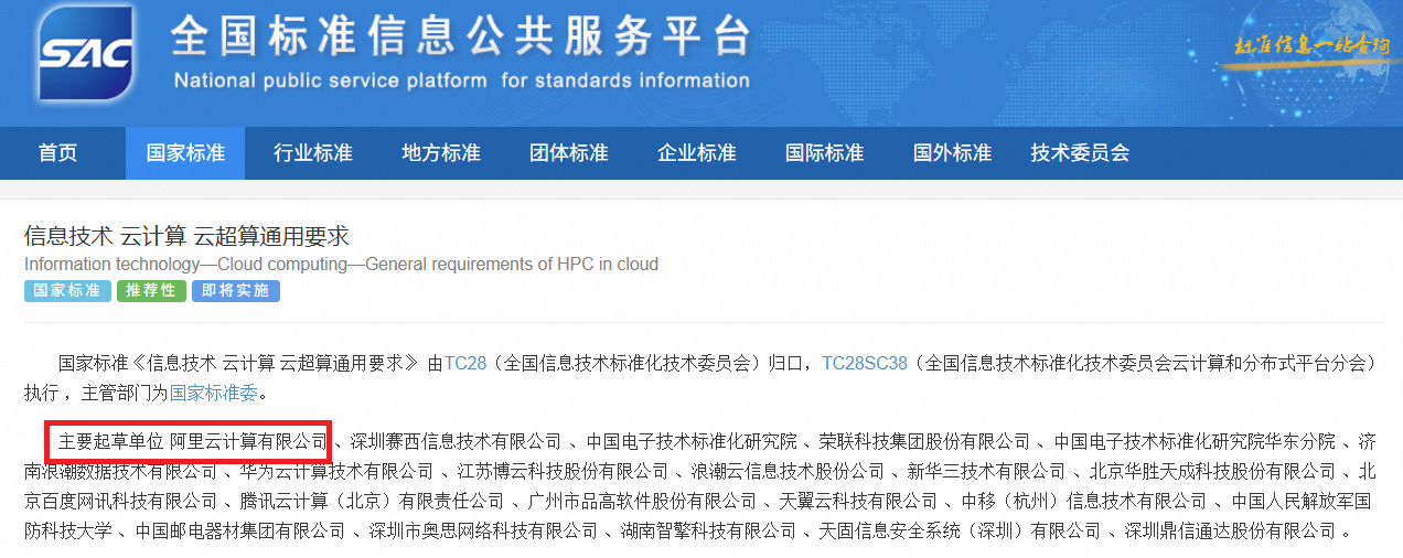 首個雲超算國家標準出爐,阿里雲、電子標準院等牽頭起草制定