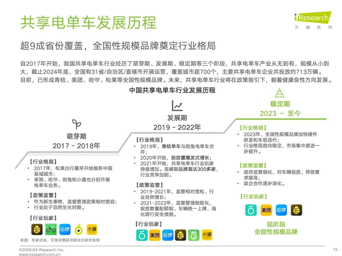 在政策支持、技術進步和市場需求等多重因素驅動下,共享電單車正在迎來黃金髮展期。以青桔、美團、哈囉、松果為代表的“全國性規模品牌”,憑藉技術創新、精細化運營能力等多方面優勢,將在這一過程中扮演重要角色。未來,隨着行業規範化程度的提升和用户需求的不斷升級,共享電單車有望成為推動城市綠色出行和智慧交通建設的重要力量。(陳十一)