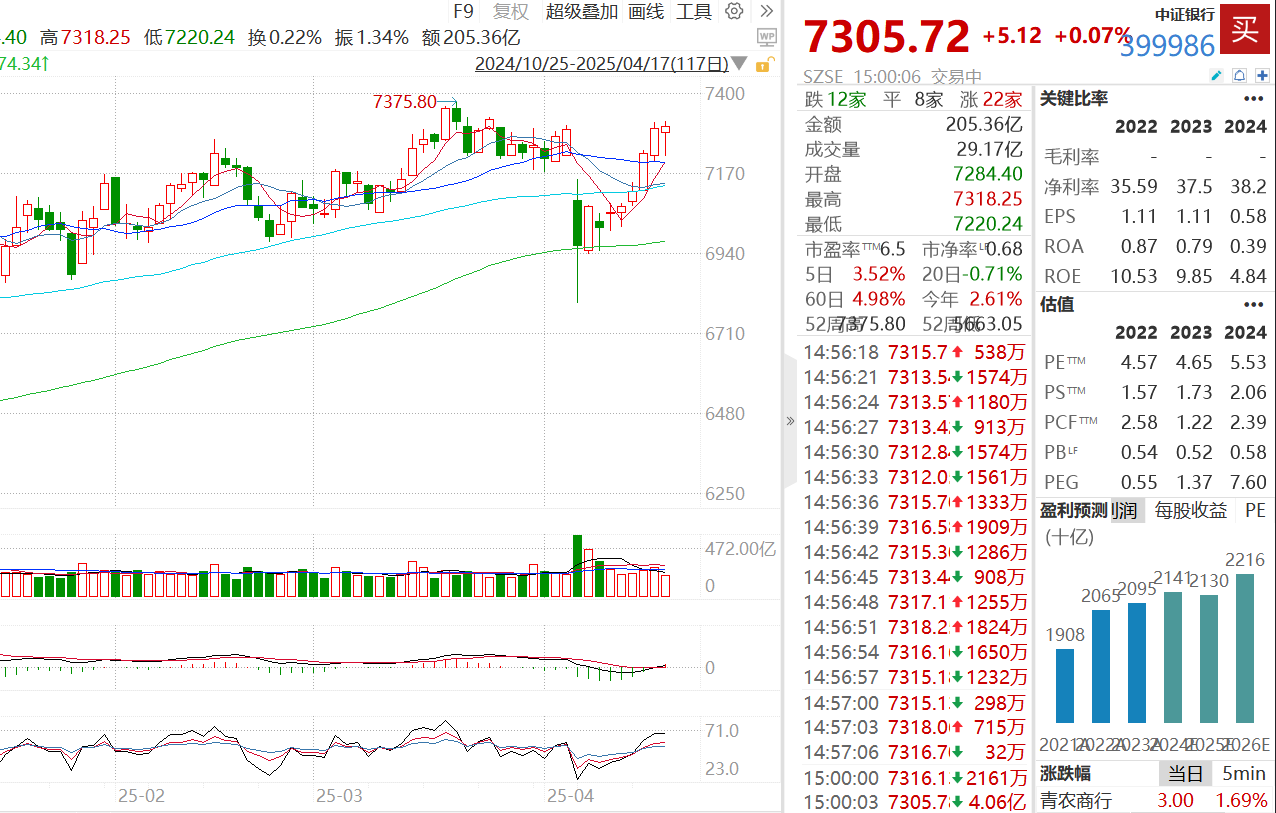 【環球網財經綜合報道】近期,銀行板塊異軍突起,成為資金追捧的“香餑餑”。4月17日,中證銀行指數逆勢上漲0.07%,實現“六連陽”,多隻銀行股股價也創下新高,其中上海銀行表現尤為亮眼。