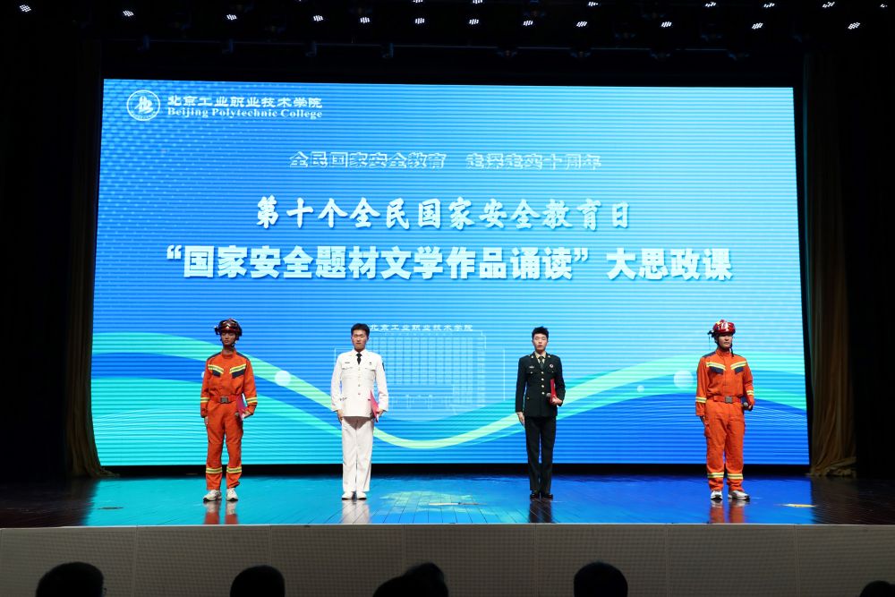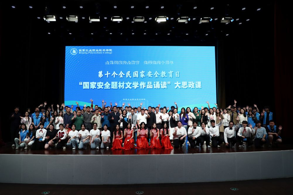 今年是《中華人民共和國國家安全法》頒佈施行十週年。為深入學習貫徹總體國家安全觀,將國家安全教育與政府工作報告中“倡導全民閲讀,建設書香社會”的要求有機融合、相互賦能,持續提高青年大學生國家安全意識和素養,4月15日,北京工業職業技術學院舉辦“國家安全題材文學作品誦讀”大思政課,以“全民國家安全教育走深走實十週年”為主題,通過文學與藝術形式鑄牢師生國家安全意識,向國家安全致以最崇高的敬意。
