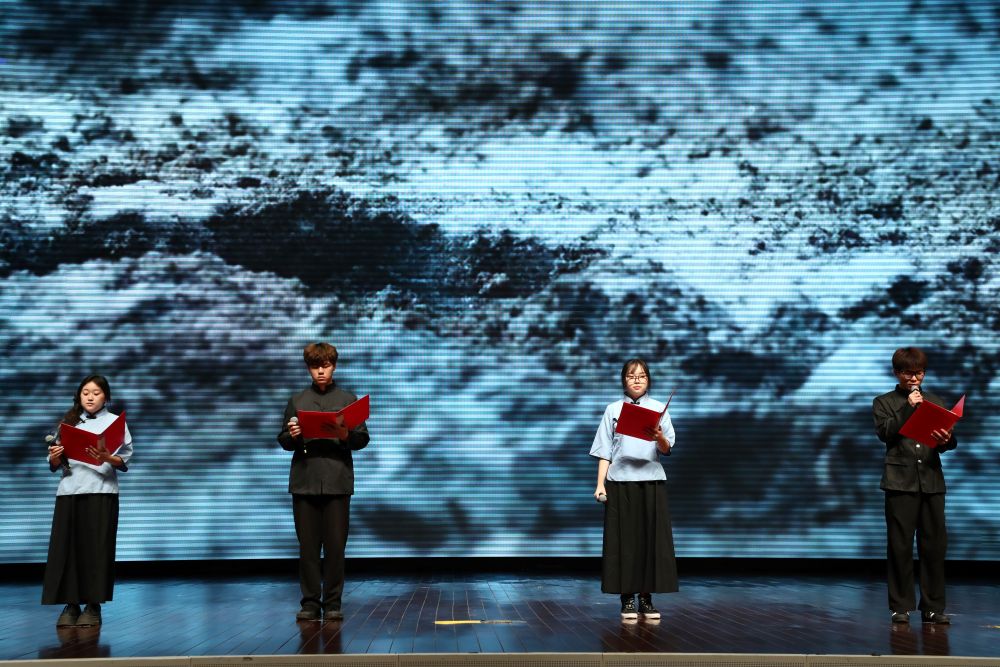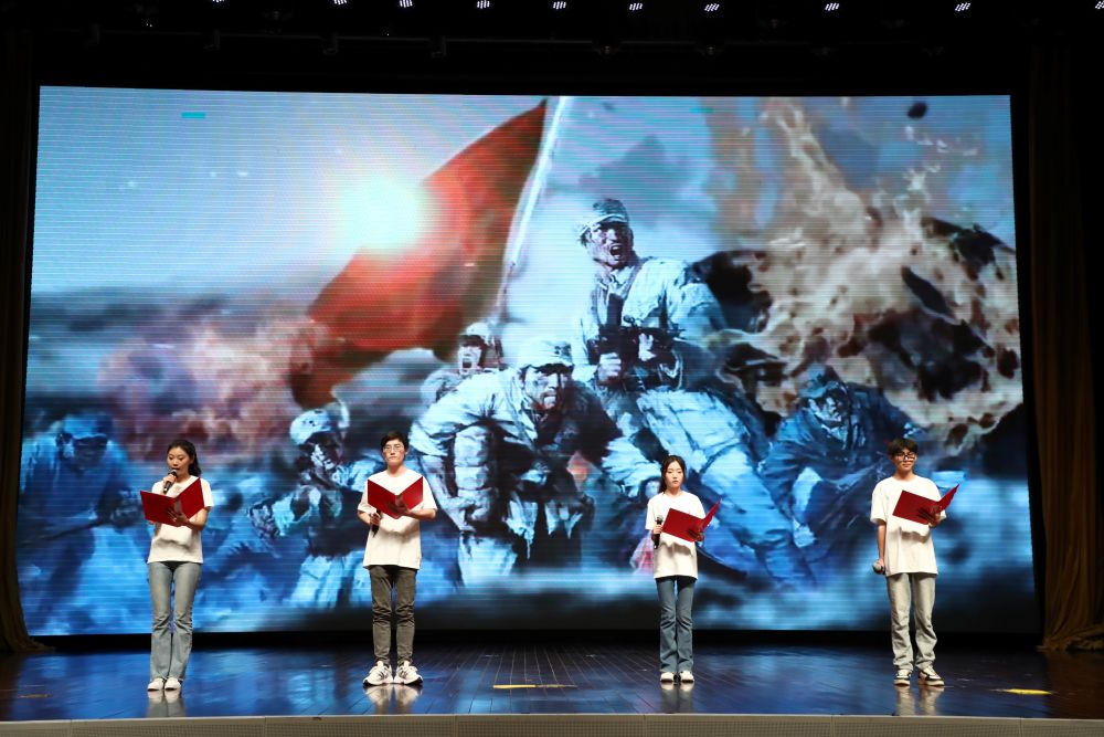 活動在激昂的開場詞中拉開帷幕。詩朗誦《我用殘損的手掌》以深沉的情感再現家國命運變遷中的赤誠信仰;《誰是最可愛的人》《不朽》通過跨越時空對話,展現不同時代英雄精神的永恆傳承;《把陣痛埋進大地》以磅礴詩篇致敬保家衞國的熱血史詩,詮釋和平的珍貴與守護的信念。