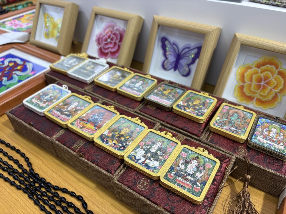 展台前,刺繡上的格桑花色彩豔麗,唐卡的硃砂與金粉流淌着信仰的温度。“我帶來的是全手工製作的民族工藝品,希望通過展會被更多人看見,期待更多人看到中華多元傳統文化。”更藏措不僅希望尋找到商業合作,更期待高原文化的風能吹向更遠的地方。