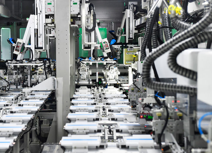 廣西柳州市瑞浦賽克動力電池有限公司電芯裝配車間(2024年5月10日攝)。新華社記者 金皓原 攝