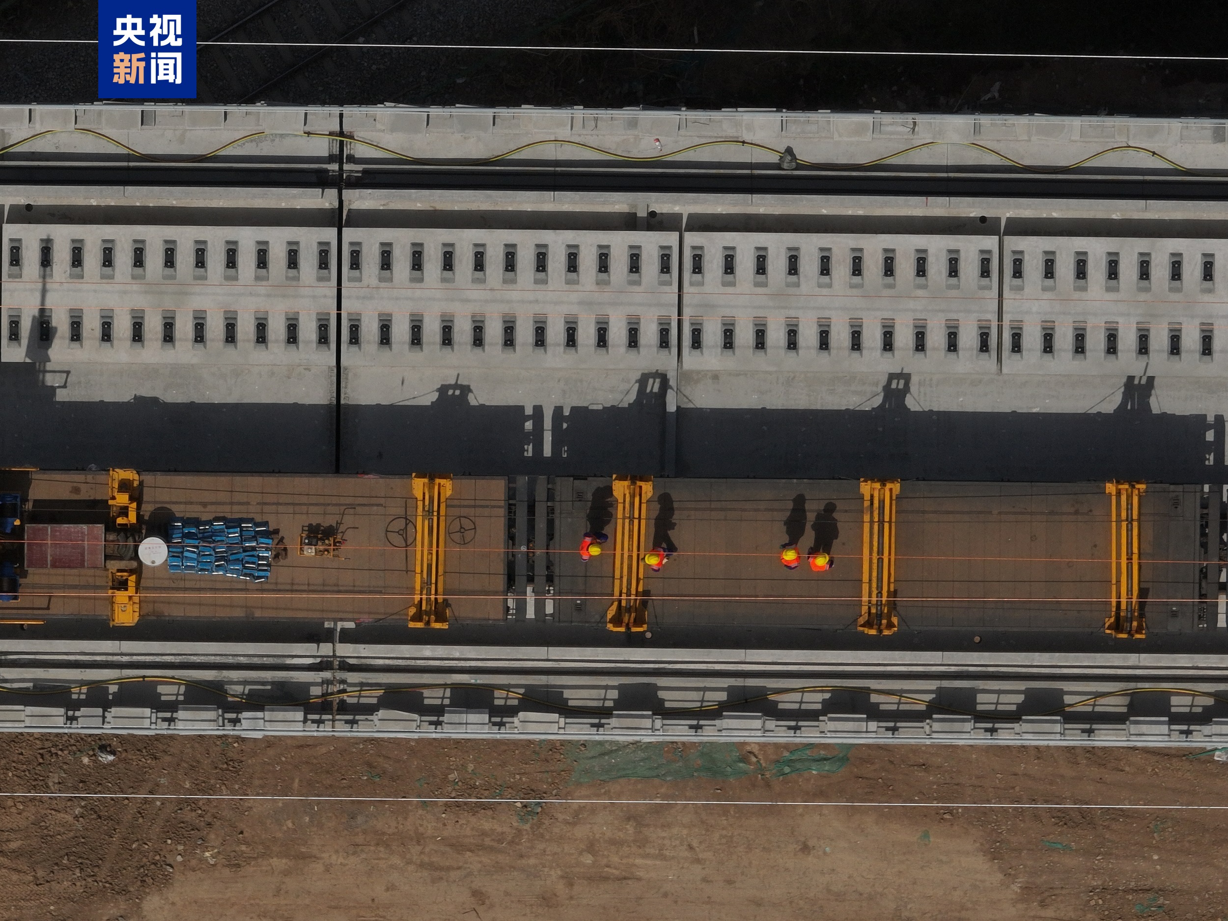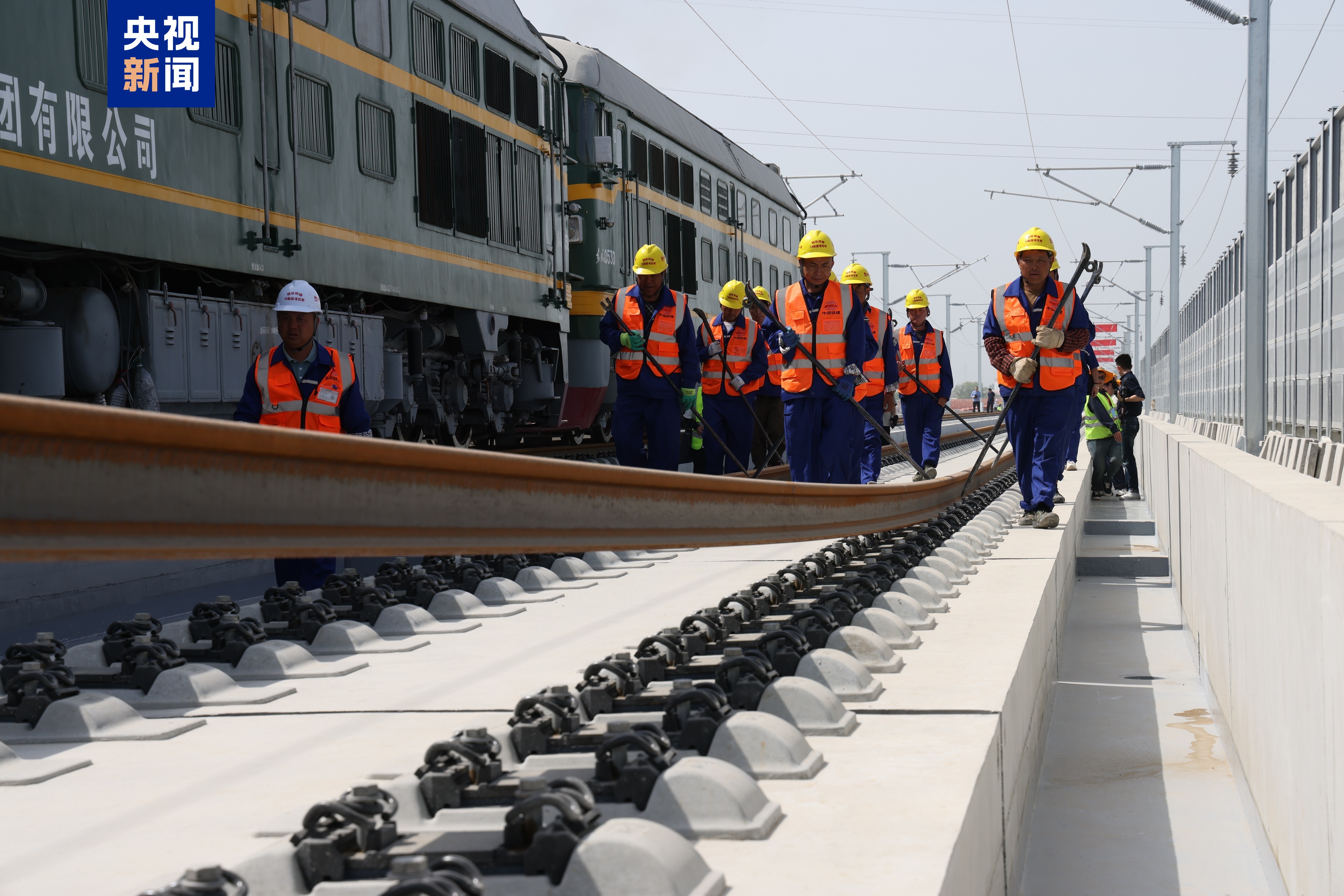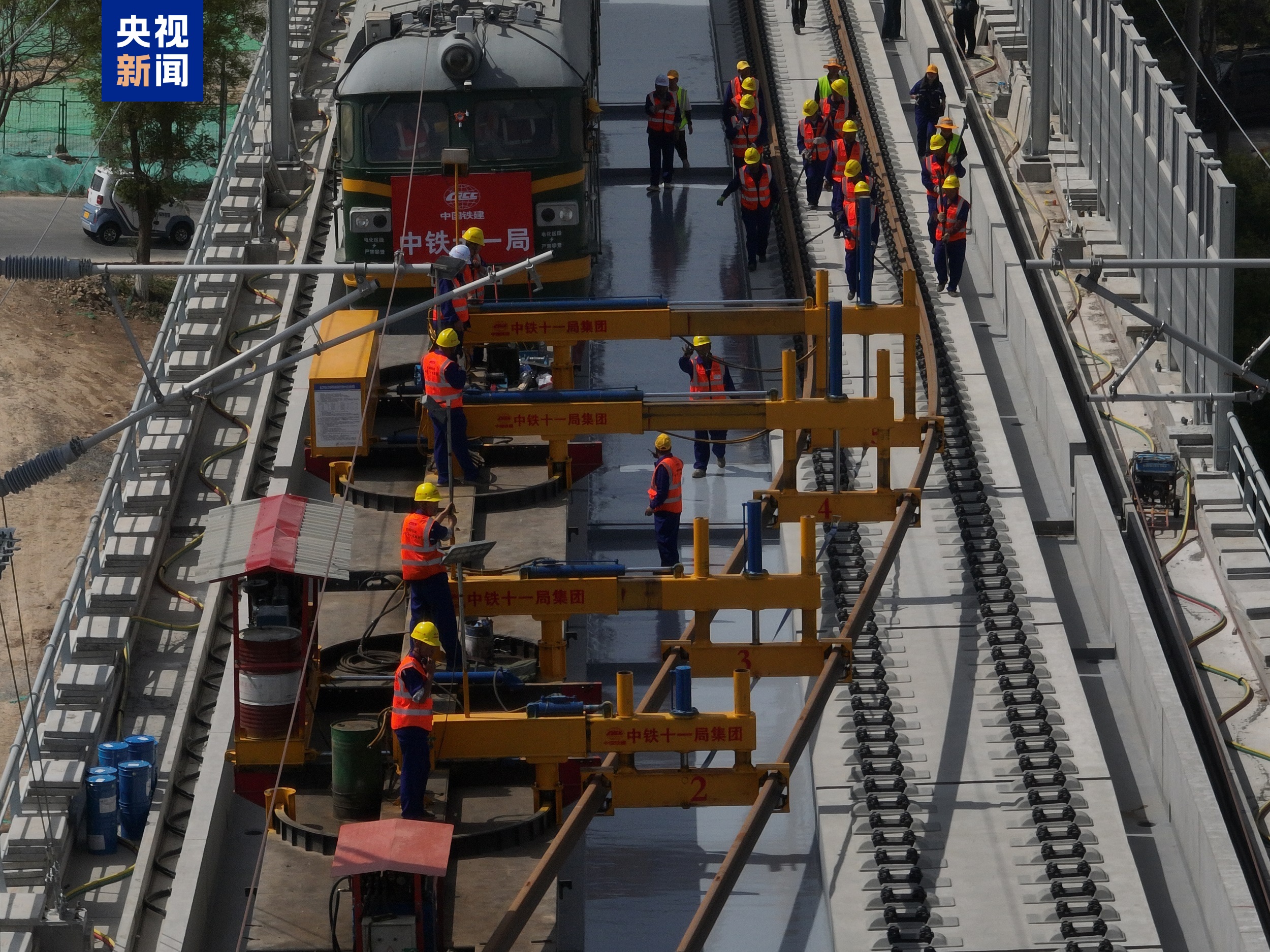 項目施工人員還通過自主研發的本鄰兩線長軌鋪軌機組進行雙線協同作業,並以西安市閻良鋪軌基地為分界點,同時向兩個方向開始鋪軌作業,配備兩套鋪軌機、三套長軌運輸支架,實現鋪軌作業高效接續,日鋪軌里程可達9.5公里,預計6月10日實現“軌通”。