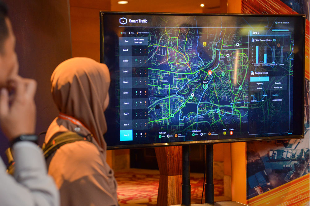 2019年,中國阿里巴巴集團旗下雲計算及人工智能科技公司阿里雲宣佈與馬來西亞智能交通公司“塞納交通系統”合作,在馬來西亞共同打造智能交通管理系統。這是2019年5月23日在吉隆坡拍攝的智能交通管理系統演示現場。