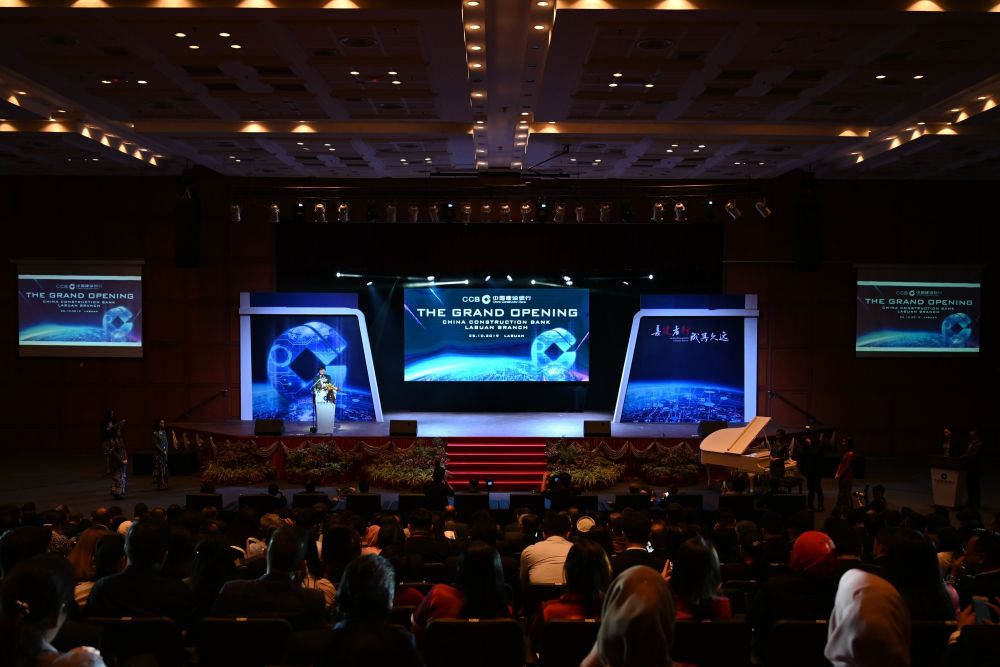 2019年10月25日,中國建設銀行納閩分行在馬來西亞納閩開業,該分行獲得了馬來西亞首塊數字銀行牌照和中國建設銀行在東南亞首張人民幣清算行牌照。這是開業儀式現場。