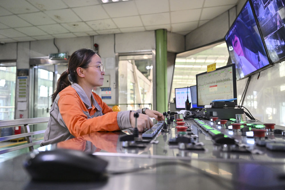 2024年6月13日,在馬來西亞彭亨州馬中關丹產業園聯合鋼鐵(大馬)集團公司工廠,中國員工在智能控制室工作。