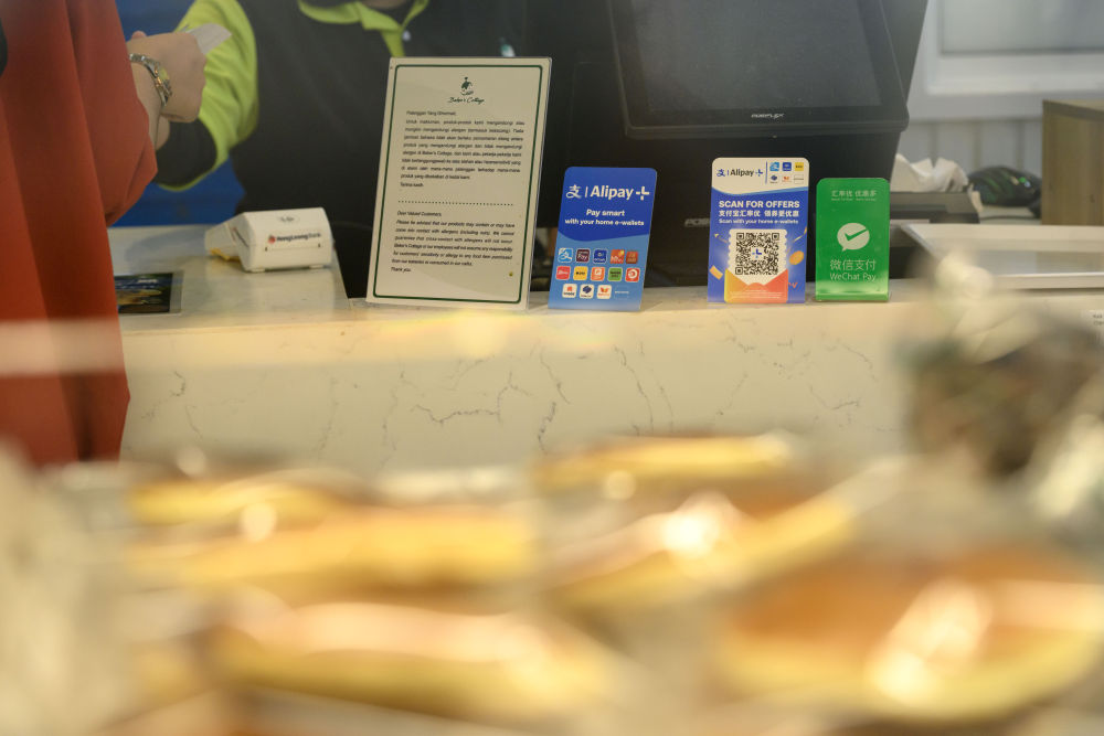 2025年4月10日,在馬來西亞吉隆坡,中國遊客通過微信支付購買商品。