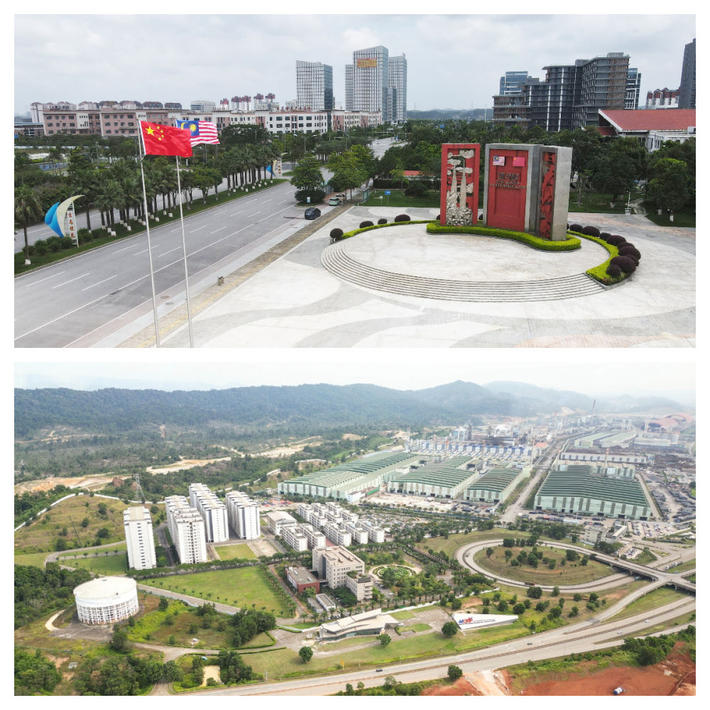 拼版照片:上圖為位於廣西欽州市的中馬欽州產業園,下圖為位於馬來西亞彭亨州的馬中關丹產業園(2024年6月13日攝)。中馬欽州產業園和馬中關丹產業園於2012年和2013年相繼開園,開創了“兩國雙園”合作新模式。十多年來,“兩國雙園”合作模式在項目建設、創新合作等方面取得豐碩成果,加快推動中馬產業合作走向縱深。