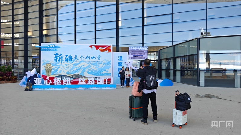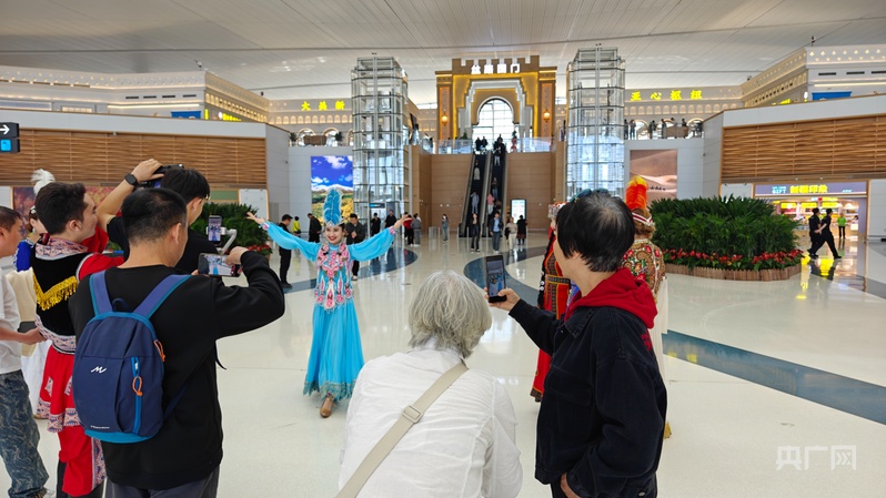 遊客在北航站區感受新疆風情 (央廣網記者郭璁悦 攝)