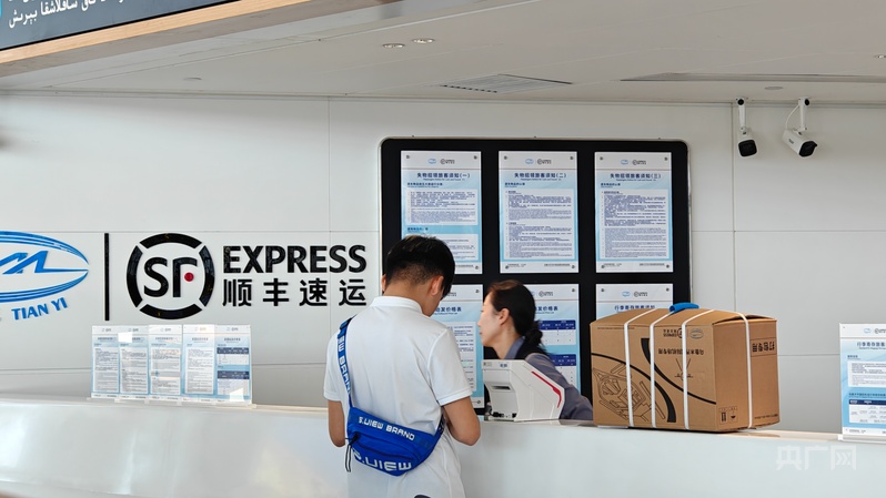 “你好,我想將這兩件行李郵寄,地址是……”在北航站區出發層兩端均設有順豐速運櫃枱,往來旅客將需要郵寄的行李和新疆特產,率先一步郵寄到即將抵達的下一站。