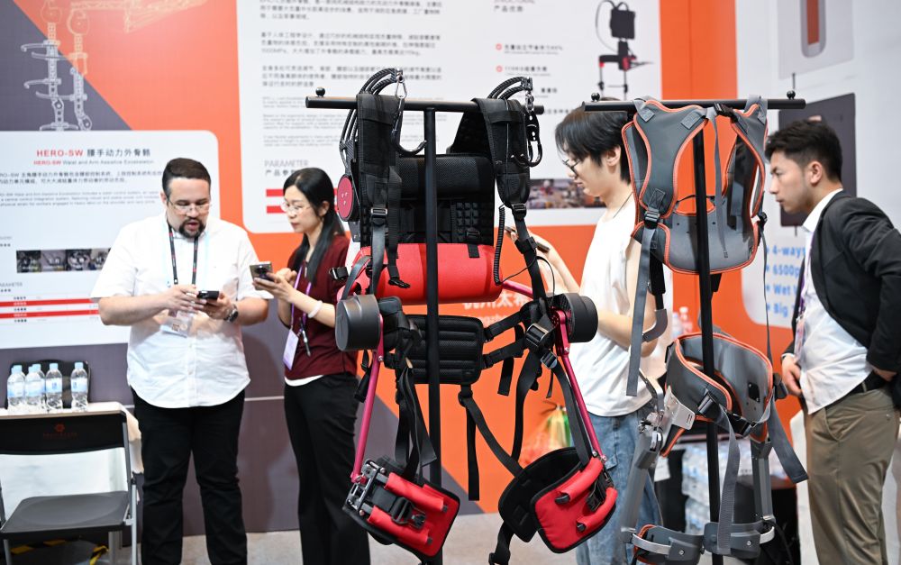 作為首次參展的“新面孔”,杭州太希智能科技有限公司創始人梁林超對自己的產品頗有信心。公司生產的外骨骼機器人正逐漸應用到物流搬運、登山助力、工業製造、醫療康復等領域。
