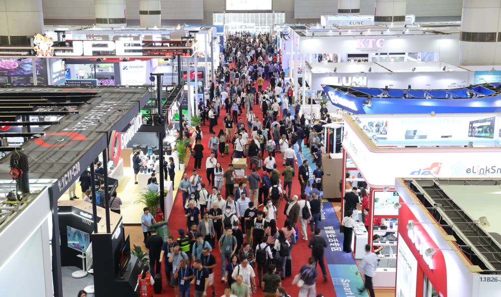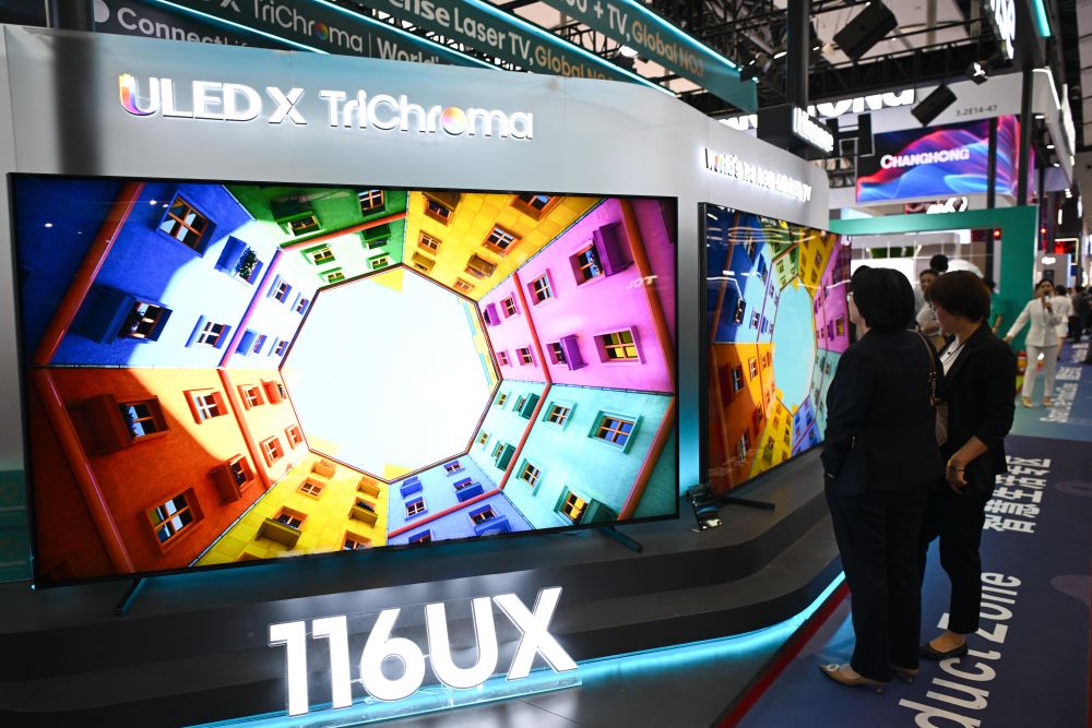 4月16日,在第137屆廣交會的智慧生活專區,觀眾觀看大尺寸電視產品。新華社記者 鄧華 攝