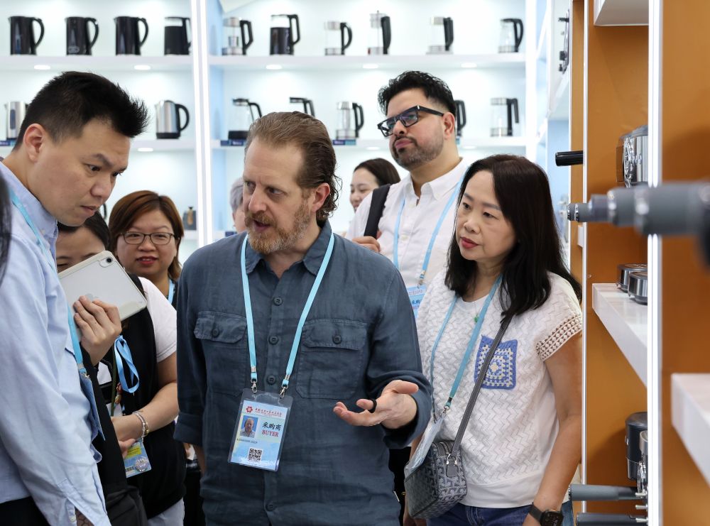 4月15日,在第137屆廣交會的智慧生活專區,境外採購商參觀格蘭仕家電產品。新華社記者 鄧華 攝