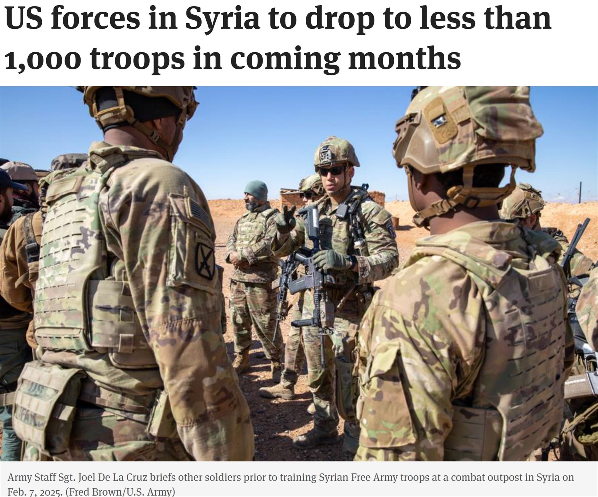 根據美國國防部當地時間18日發佈的聲明,美國將把駐敍利亞的美軍整合至敍利亞境內選定的地點。這將使未來幾個月內美國在敍利亞的駐軍規模減少到不足1000人。