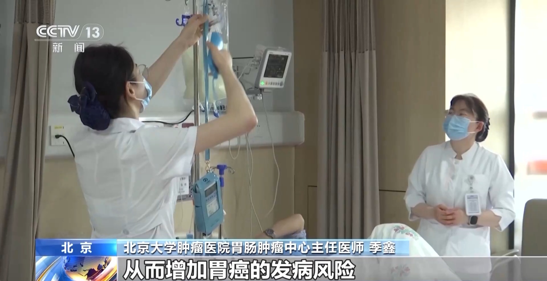 *北京大學腫瘤醫院胃腸腫瘤中心主任醫師 季鑫:*這種細菌生活在胃的幽門部,它的一些代謝和分泌的產物會影響和破壞正常的胃黏膜的功能,從而增加胃癌的發病風險。所以我們對於幽門螺桿菌要及時進行篩查,如果發現幽門螺桿菌的感染是陽性的,那麼我們應該口服藥物2~3周。