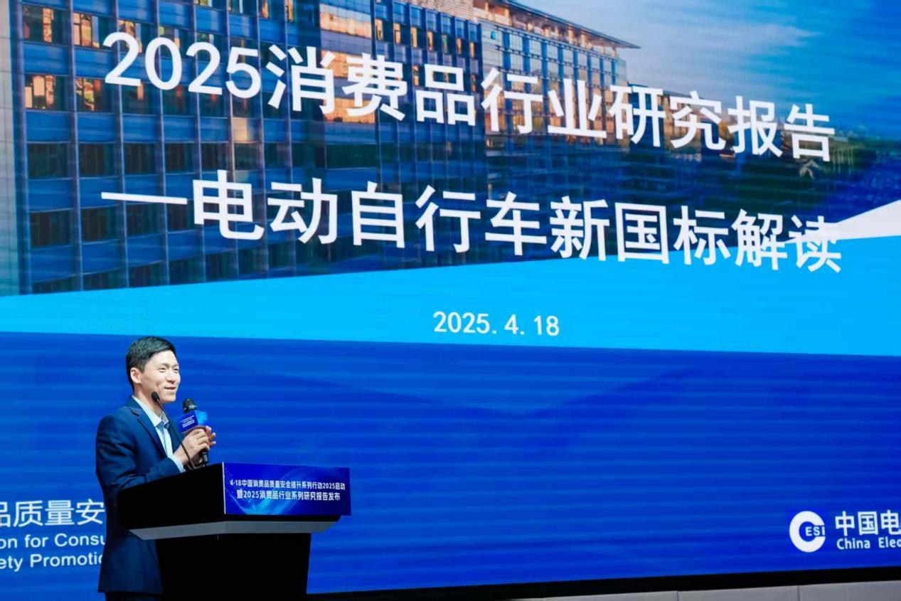 會上,中國電子技術標準化研究院發佈的《2025消費品行業系列研究報告-電動自行車新國標解讀》顯示,我國已成為全球電動自行車生產國和消費大國,社會保有量高達3.5億輛,2023年規模以上企業累計生產電動自行車4228萬輛。電動自行車憑藉其便捷、經濟的特點,已成為羣眾短途出行的重要交通工具。