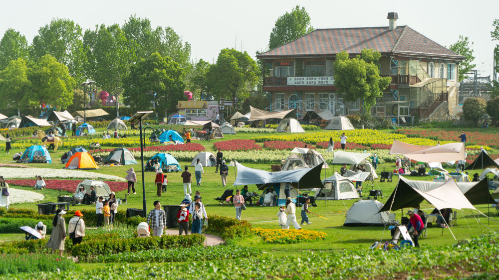遊客在花博彙露營。新華社記者 熊翔鶴 攝