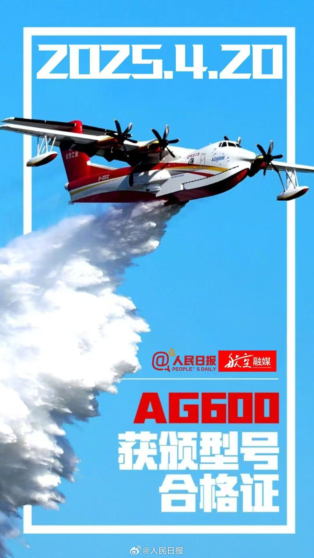 4月20日,我國首次按照中國民航適航規章完全自主研製的AG600飛機在京獲頒中國民航局型號合格證,標誌着全球起飛重量最大的民用水陸兩棲飛機通過了嚴格測試和驗證,研製取得圓滿成功,獲得進入市場“准入證”。