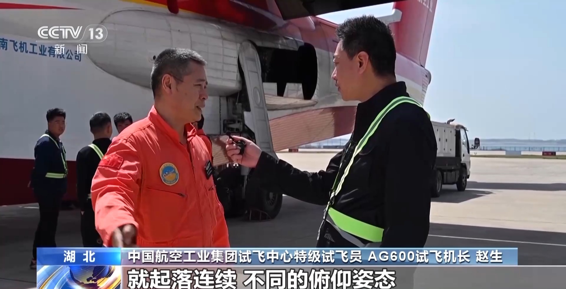 *中國航空工業集團試飛中心特級試飛員、AG600試飛機長 趙生:*就起落連續,不同的俯仰姿態、不同的接地接水姿態,這樣做連續試飛。水面降落的時候,對飛機下沉率要求很高,如果説下沉率大了之後,飛機就會跳。而且它對飛機的接水姿態也有要求,範圍很小,三度姿態到五度姿態,就是這麼兩度的可控範圍。在接水的時候,不僅要控制它的下降率,還要控制它接水的姿態,難度有點大,慢慢適應才行。