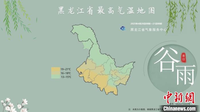 “穀雨首日”黑龍江省最高氣温地圖(2025年4月20日8時至21日8時)。 黑龍江省氣象局供圖
