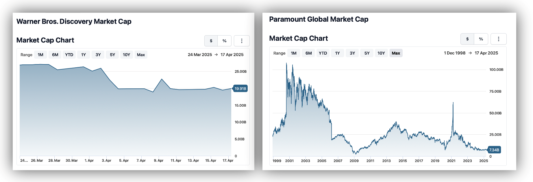華納兄弟連續三週市值大縮水,已經蒸發66億美元,派拉蒙兩週內市值減少超10%。
