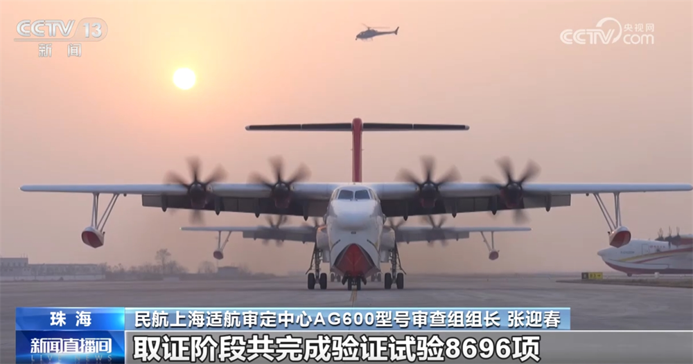 民航上海適航審定中心AG600型號審查組組長張迎春稱:“從申請人向民航局提交申請開始,AG600型號合格審定歷時12年3個月,取證階段共完成驗證試驗8696項,累計試飛2167架次、4931小時,批准符合性報告6685份,驗證了對審定基礎中353項要求的符合性。”