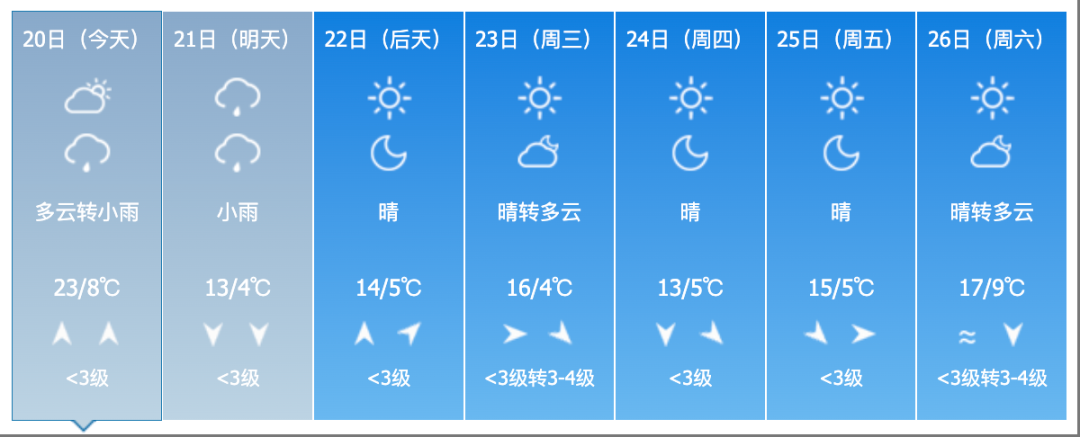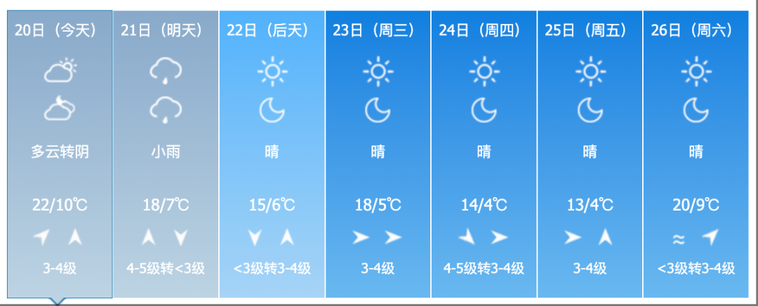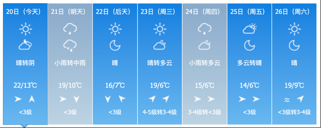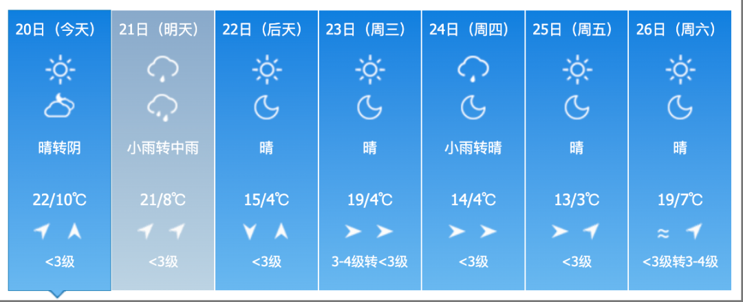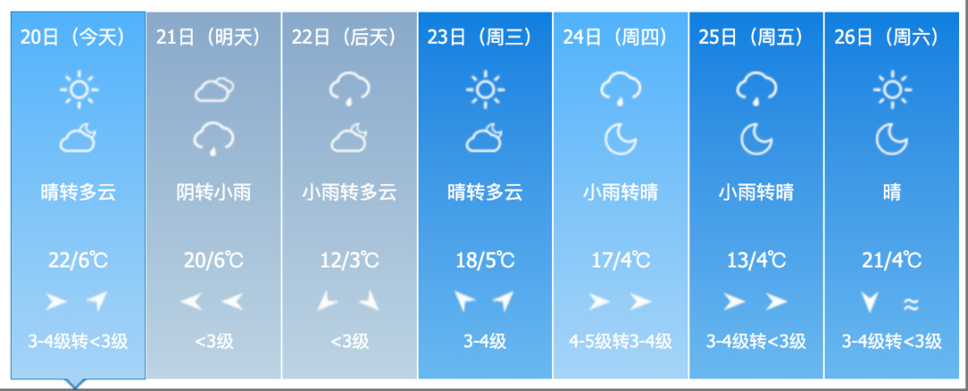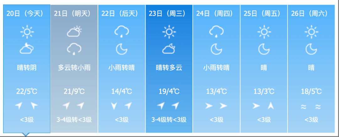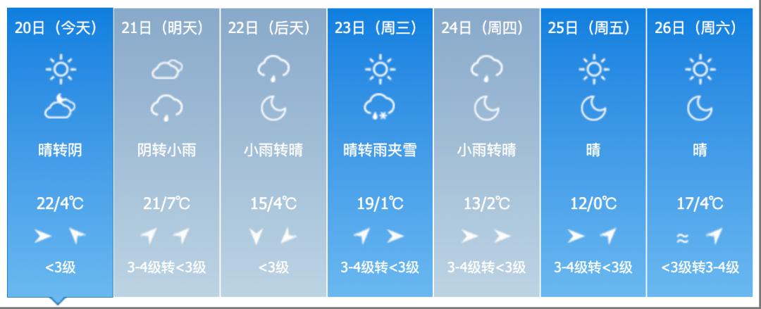 22日夜間到23日白天,全省多雲轉晴。