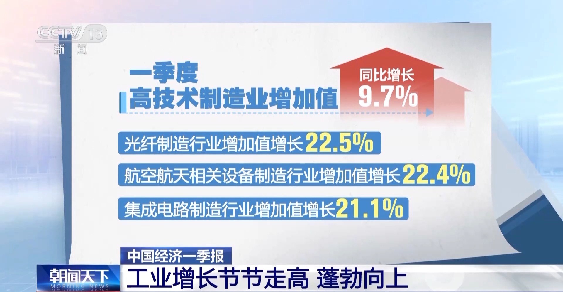 專家表示,今年一季度,高技術製造業的增長達到了2022年6月以來累計增速的新高點,展現出了非常好的一個增長態勢。