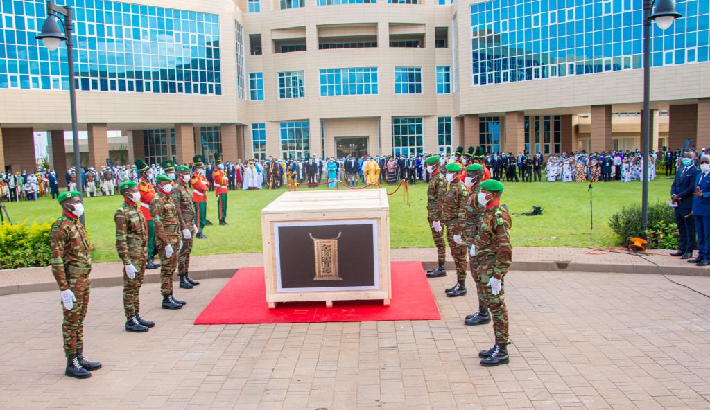 2021年11月10日,人們在貝寧科托努總統府參加歸還歷史文物慶祝活動。新華社發(貝寧總統府供圖)