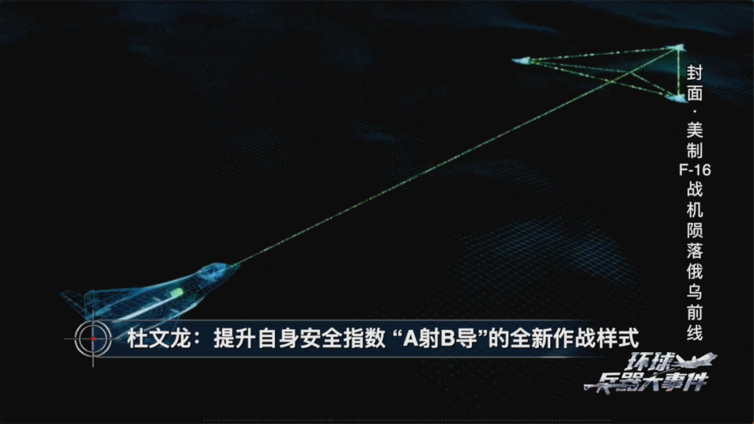 軍事專家杜文龍介紹:“西方國家把‘A射B導’叫武器裝備交第三方控制 ,就是説我發射導彈,不一定是由我制導擊中的目標。如果用空空導彈攻擊,導彈發射之後,為了防止本機被暴露,可以用預警機包括其他的飛機持續引導導彈,通過第三方把導彈引向相關區域,進而命中目標。 ”