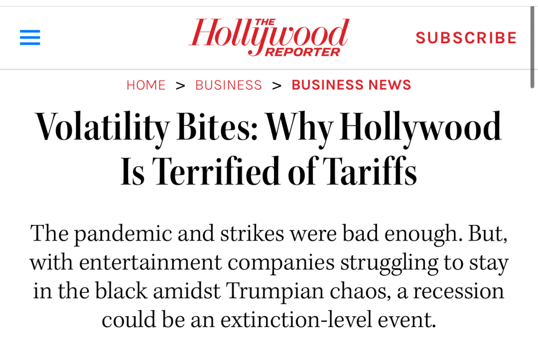 這是最近《好萊塢報道者》發表的一篇題為《被不確定性吞噬:為什麼好萊塢害怕關税》的報道。