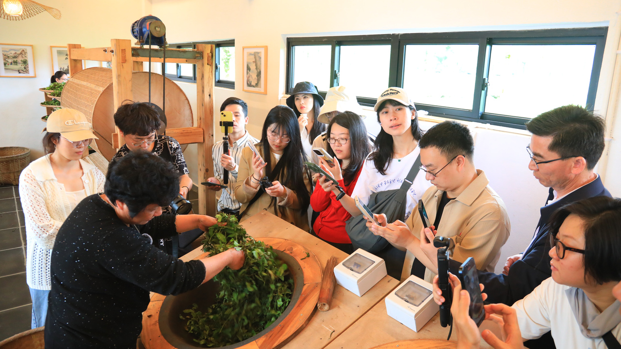 非物質文化遺產武夷巖茶(大紅袍)製作技藝傳承人遊玉瓊帶領媒體記者體驗炒茶 潮新聞記者 朱驊超攝