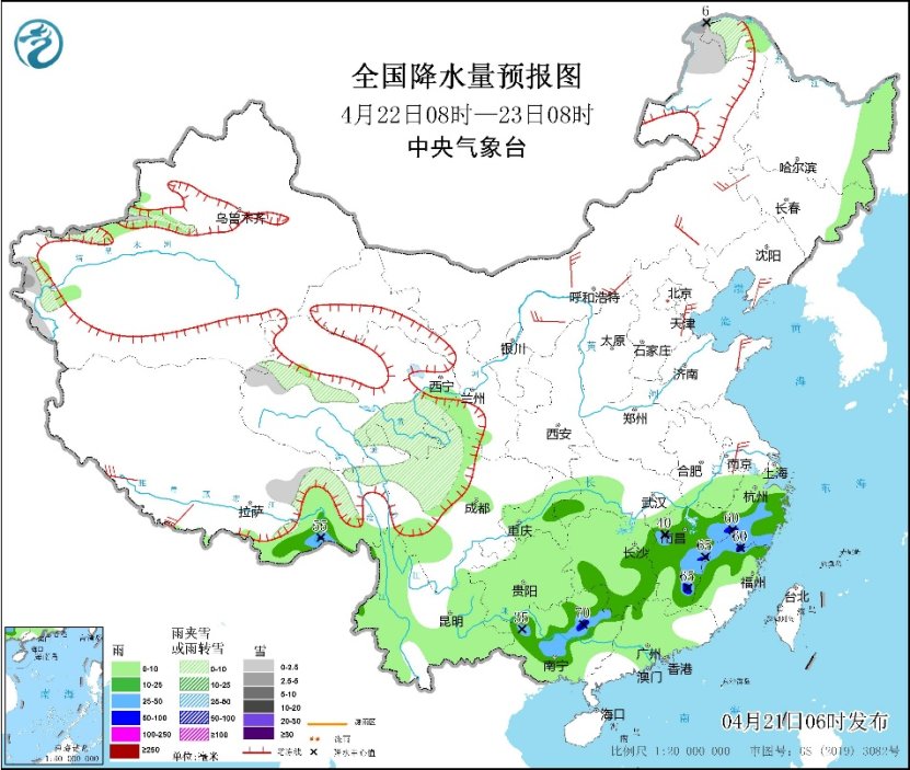 本週,我國天氣複雜多樣。其中,21日至25日,南方地區將是多降雨的狀態,降雨期間還需警惕強對流天氣;21日至24日,北方地區將有大風、降温、沙塵及弱降水天氣。