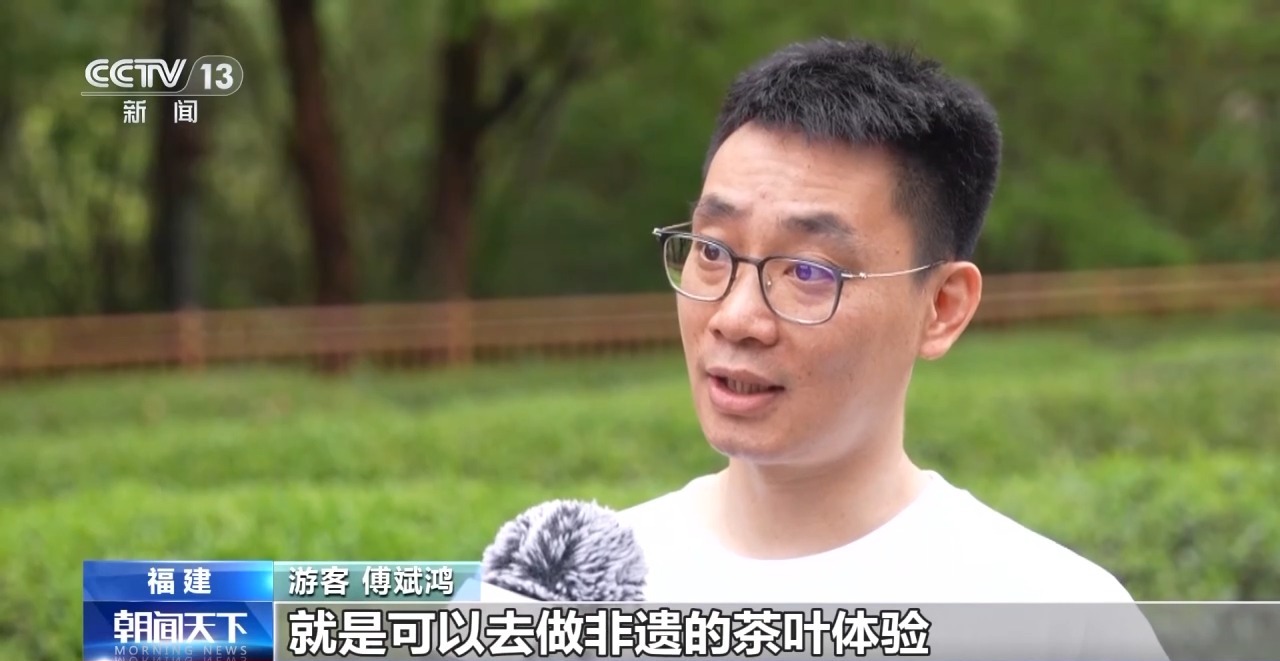 *遊客 傅斌鴻:*武夷山的茶跟武夷山的旅遊融合得特別棒,在這裏有個很好的特色就是可以去做非遺的茶葉體驗。
