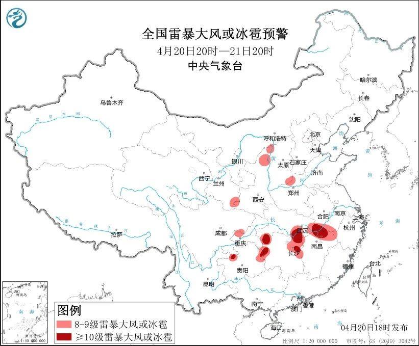 預計,20日夜間到21日白天,貴州東部、重慶東部、湖北東部和南部、湖南北部、江西北部、安徽南部、江蘇西南部、浙江中部、福建西北部以及河南東南部、河北東南部等地的部分地區有大到暴雨,其中,湖北東南部、湖南北部等地局地有大暴雨(100~130毫米)。